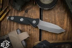 Microtech Socom Alpha Fixed Blade Knife Black G10 5″ Tanto Serrated Apocalyptic Stonewash 114-11AP