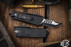 Microtech Mini Troodon OTF Automatic Cali Legal Knife 1.9″ Dagger Serrated Stonewash 238-12