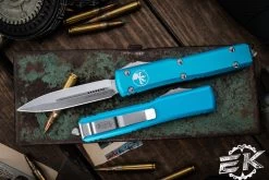 Microtech Ultratech OTF Automatic Knife Turquoise 3.4″ Drop Point Stonewash Serrated 121-11TQ