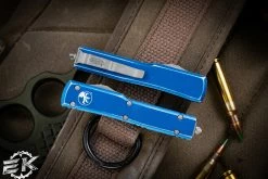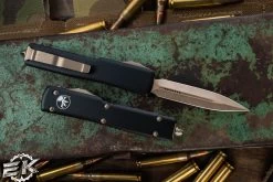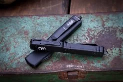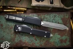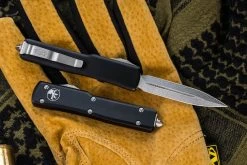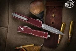 Microtech UTX-70 Distressed Merlot Red OTF Knife 2.4″ Dagger Double Serrated Stonewash 147-D12DMR