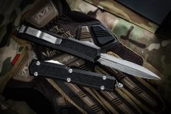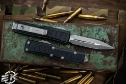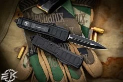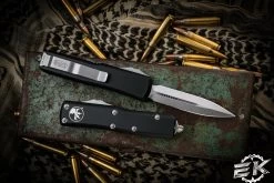 Microtech UTX-85 II Stepside Automatic Knife Black 3″ Dagger Double Full Serrated 232II-D3TS