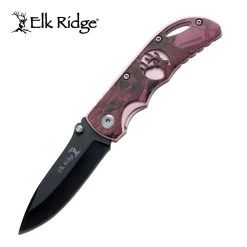 This Elk Ridge Spring Assisted hunting frontier knife is the perfect hunting knife to have. Featuring three stainless steel blades, this frontier knife will finish any task, including skinning and slicing. The Two Tone handle with Elk Ridge medallion handle provides an excellent and secure grip.