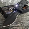 This 6.5″ Elk Ridge wooden handle manual hunting frontier knife is the perfect hunting knife to have. Featuring three stainless steel blades, this frontier knife will finish any task, including skinning and slicing. The yellow handle with Elk Ridge medallion handle provides an excellent and secure grip.