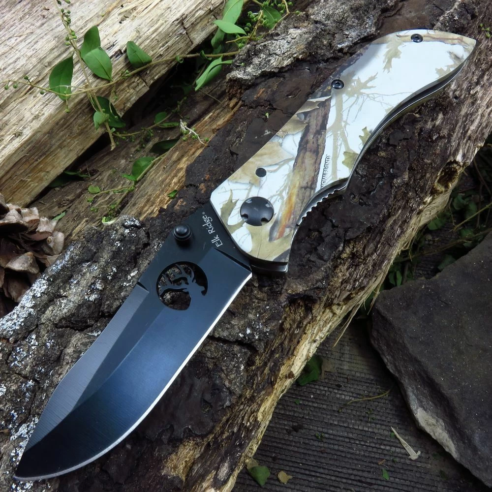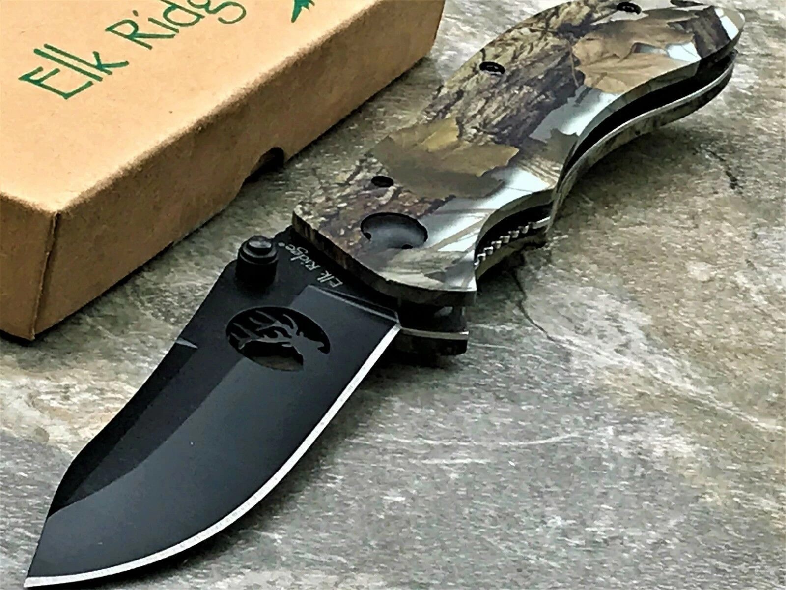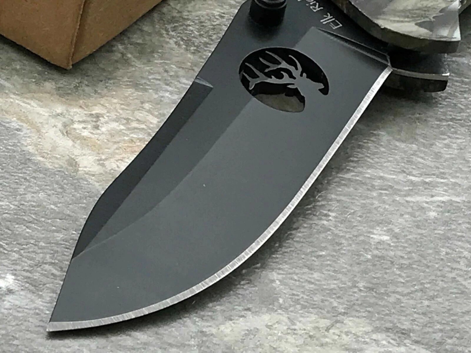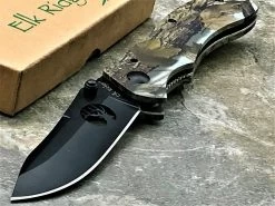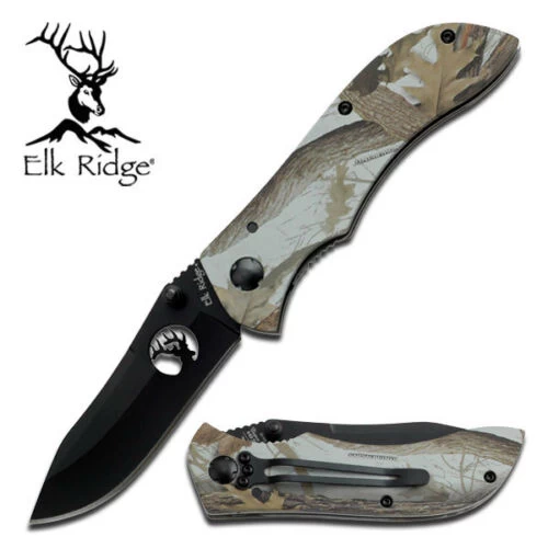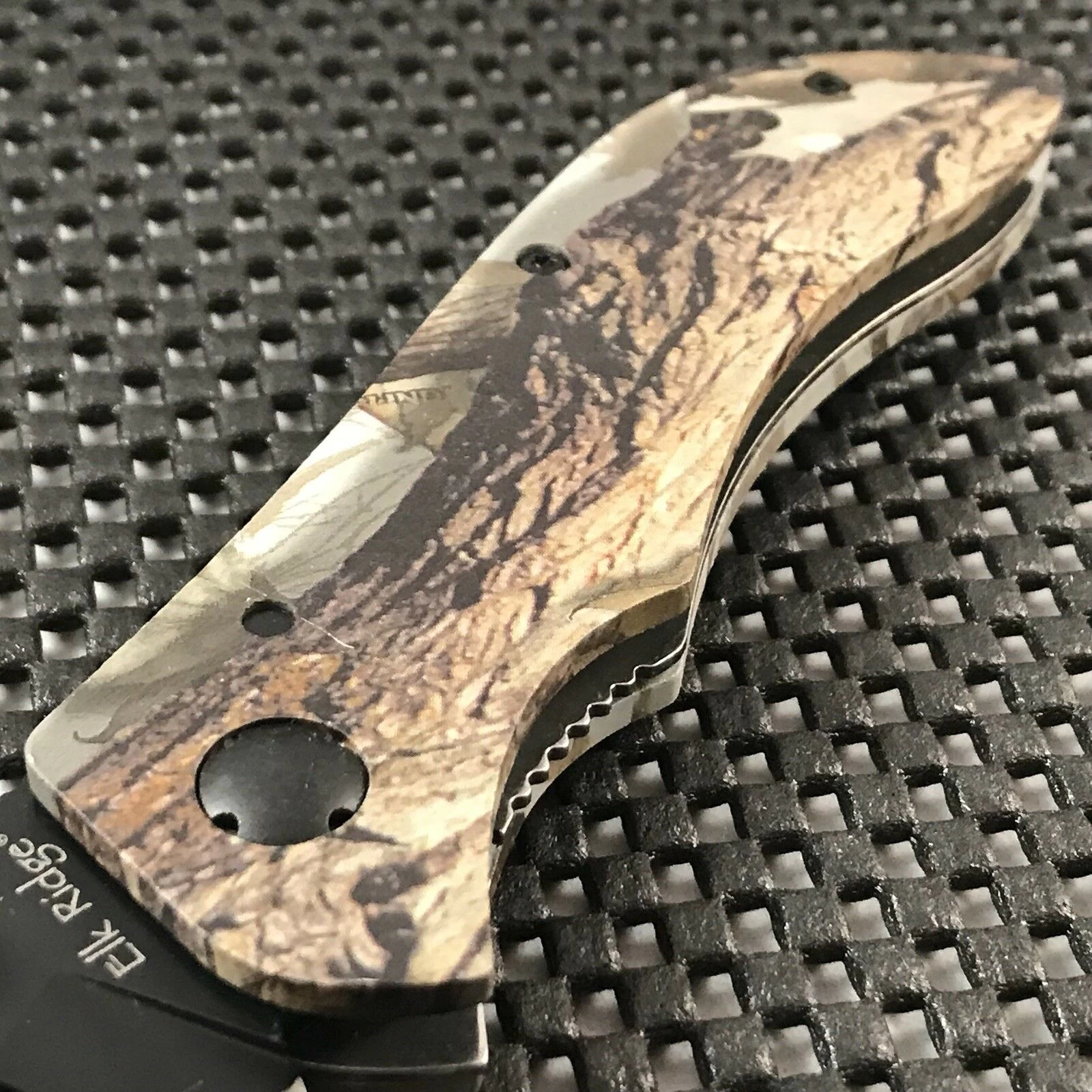 This Elk Ridge Spring Assisted hunting frontier knife is the perfect hunting knife to have. Featuring three stainless steel blades, this frontier knife will finish any task, including skinning and slicing. The Two Tone Pakkawood handle with Elk Ridge medallion handle provides an excellent and secure grip.