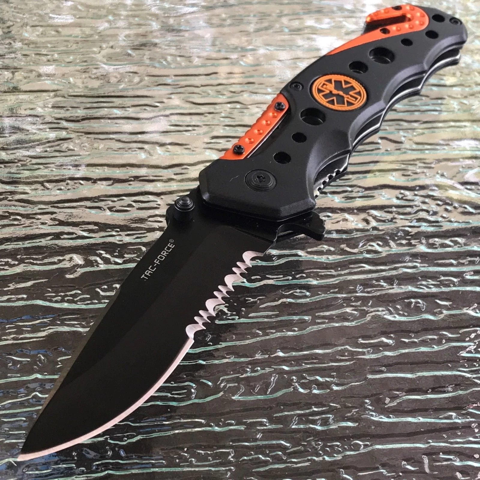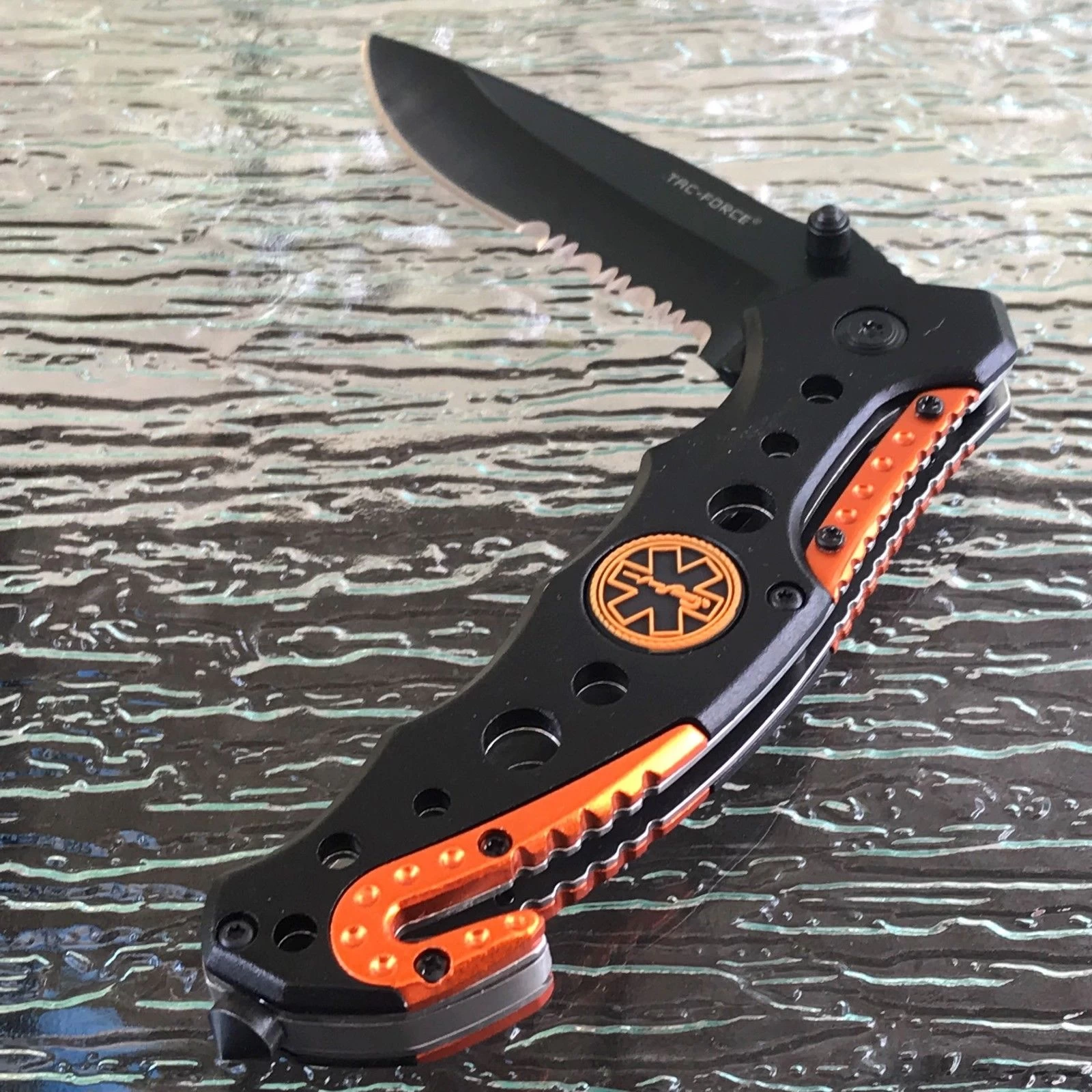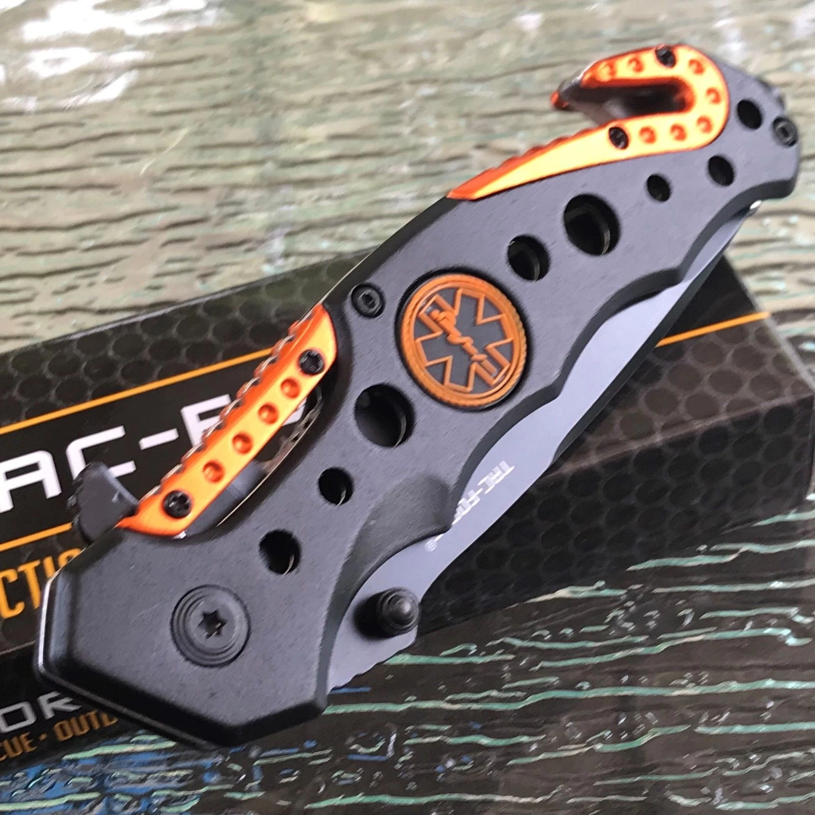- Type: Tac Force Tactical EMT EMS Orange & Black Emergency Rescue Assisted Pocket Knife (TF-723EM)