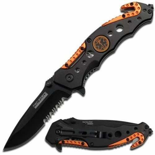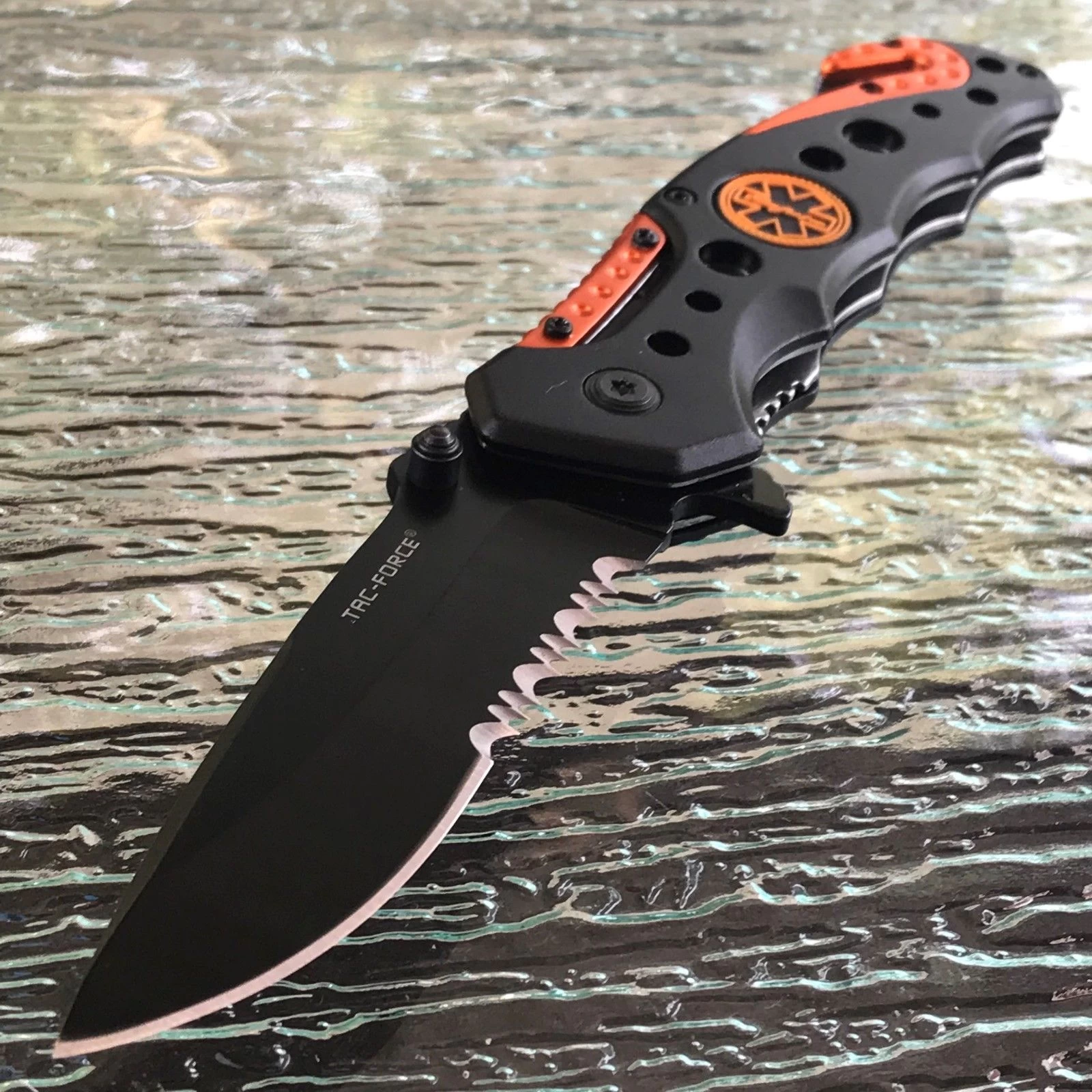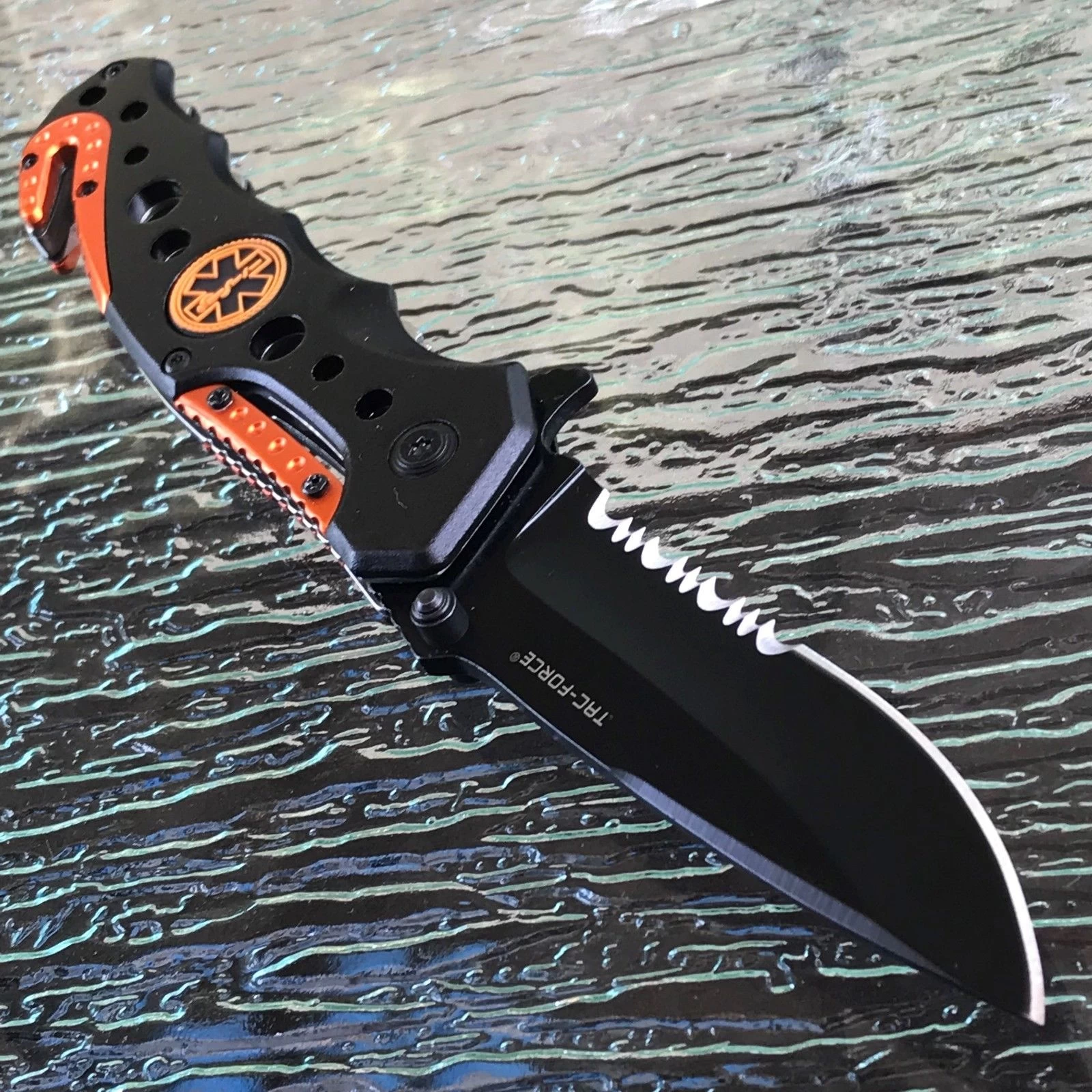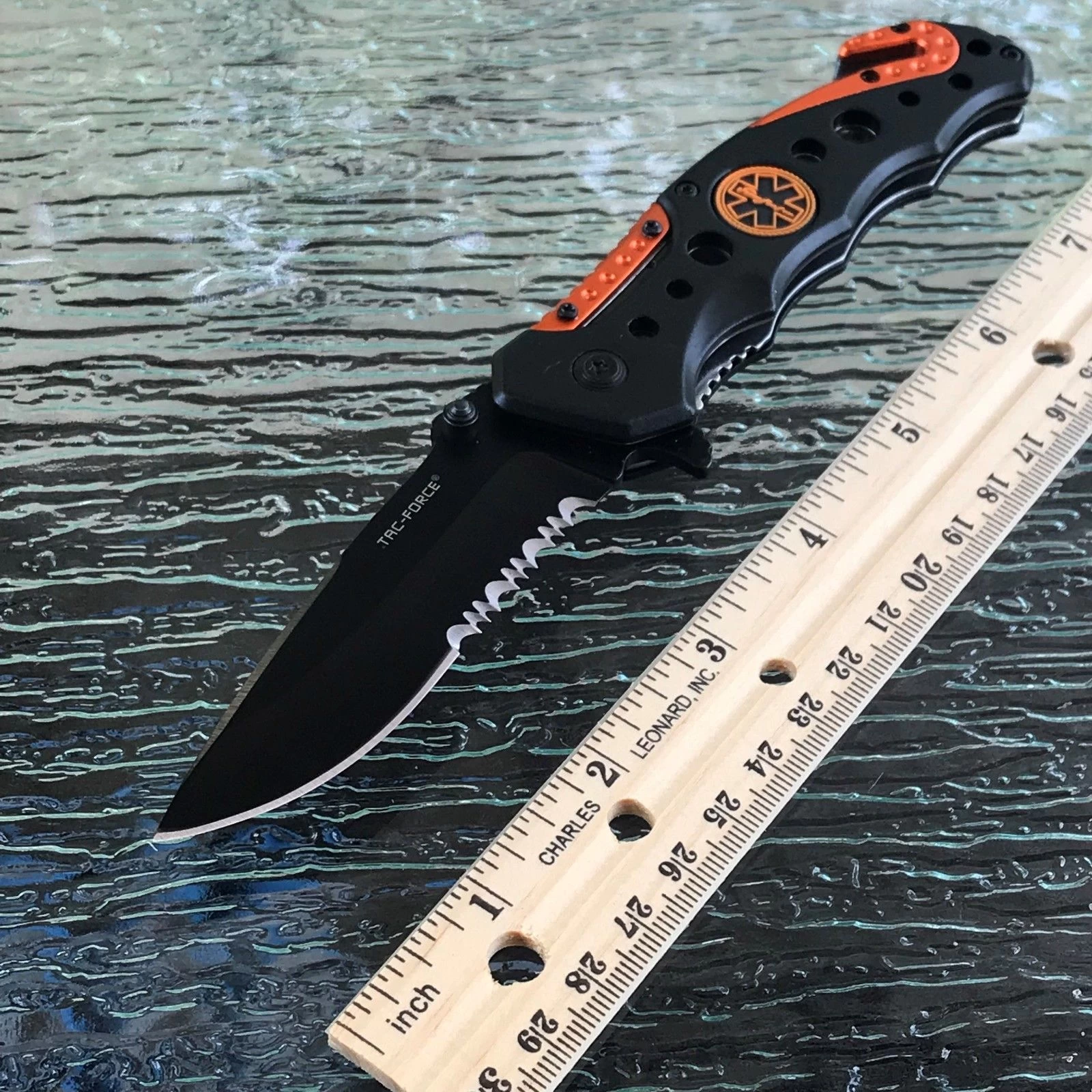 - Type: Tac Force Tactical EMT EMS Orange & Black Emergency Rescue Assisted Pocket Knife (TF-723EM)