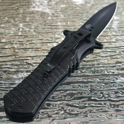 This dark side blades punisher skull ballistic fantasy pocket knife is a great knife to add to the collection. Featuring a spear point stainless steel blade, this knife is great for a variety of tasks, including slicing and piercing. The aluminum handle provides an excellent grip and highlights a punisher skull. Includes belt clip for easy portability.