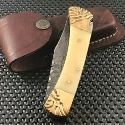 This 8.5″ Damascus folding knife is one of a kind. Featuring a sharp double edged damascus blade made from heat treatments and hand forging, this knife will get finish the job. This knife combines the portability of folding pocket knives and the quality of damascus steel knives to make one of the most functional damascus knives. Limited Quantities Available – Don’t Miss Out!