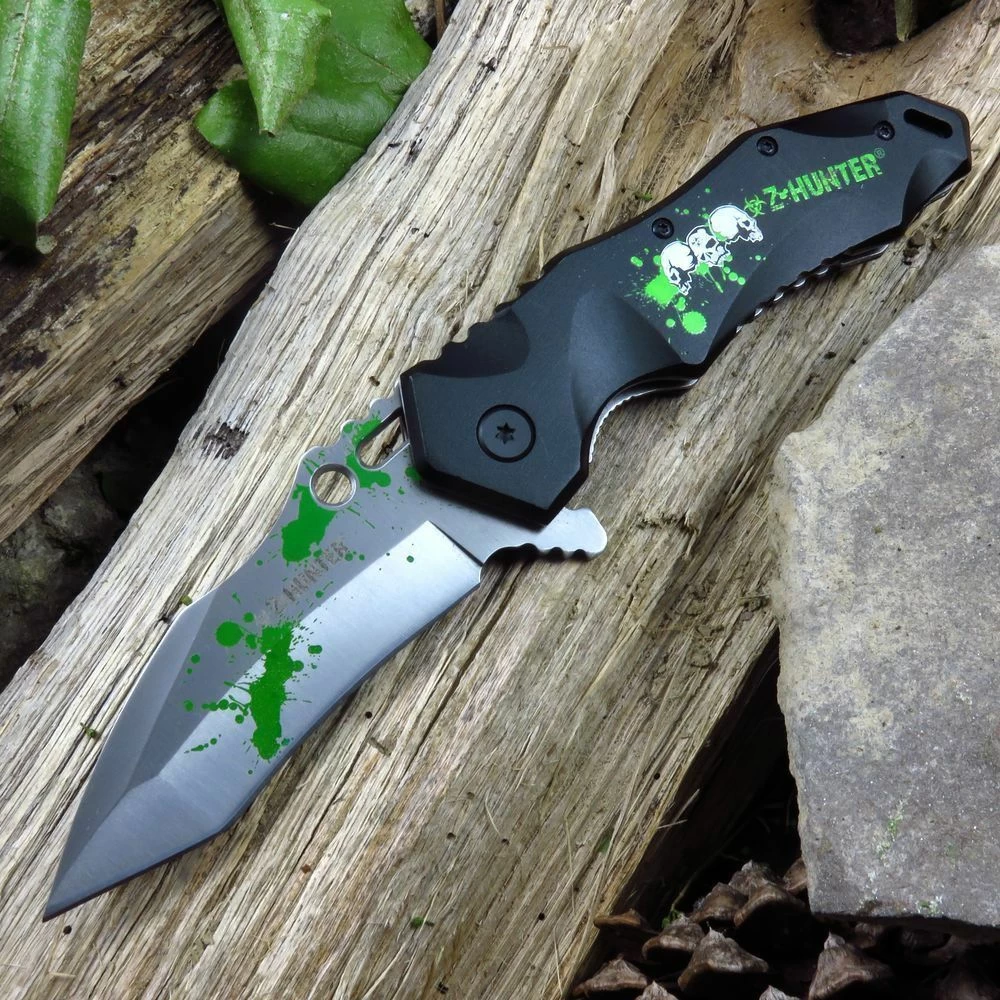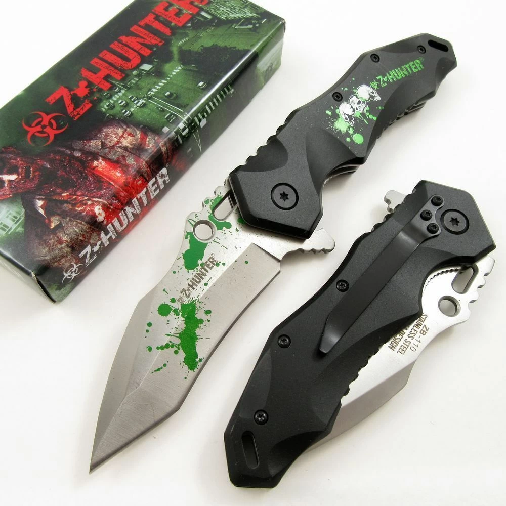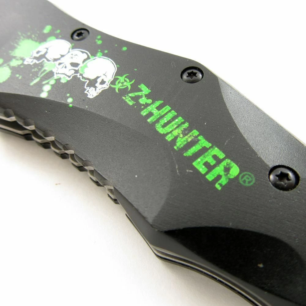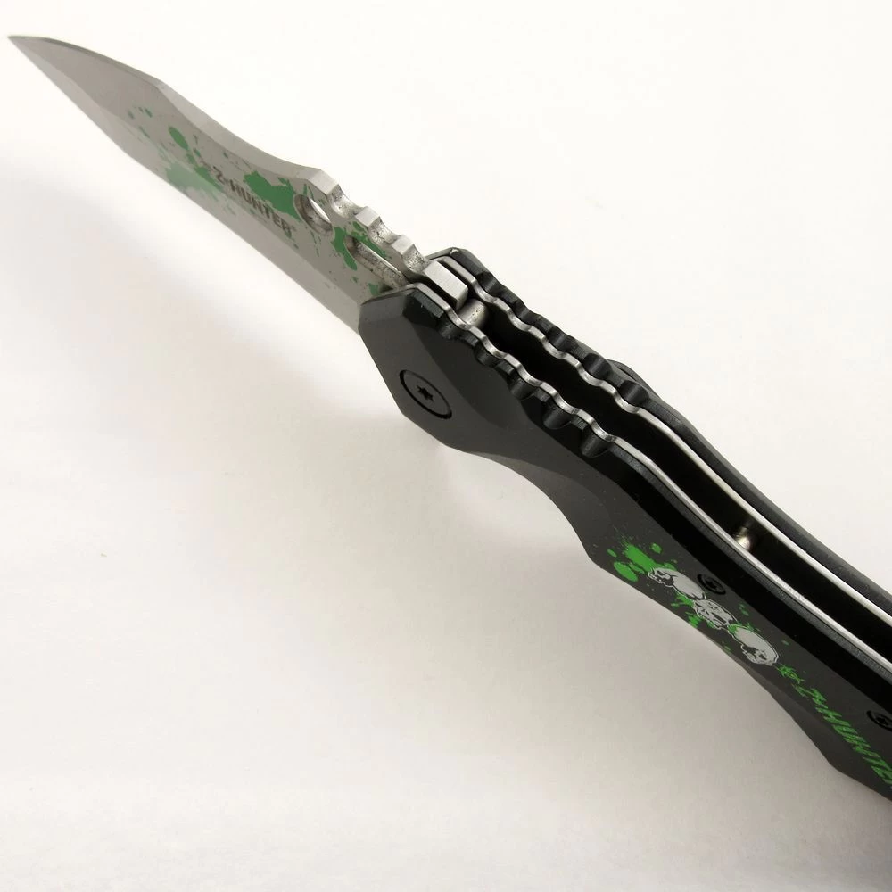 - Type: Z-Hunter Green Blood Splatter Zombie Skulls Fantasy Pocket Knife (ZB-110BG)