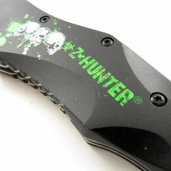 - Blade Finish: Silver – Green Blood Splatter Blade Design & “Z-Hunter” Biohazard Imprint
