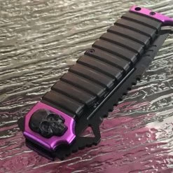 This 8.75″ Mtech purple handle zombie skull ballistic pocket knife is a great fantasy knife to have. Featuring a partially serrated stainless steel tanto blade, this knife is great for cutting. The striped grip on the aluminum handle provides an excellent grip. This fantasy knife Comes with pocket clip.