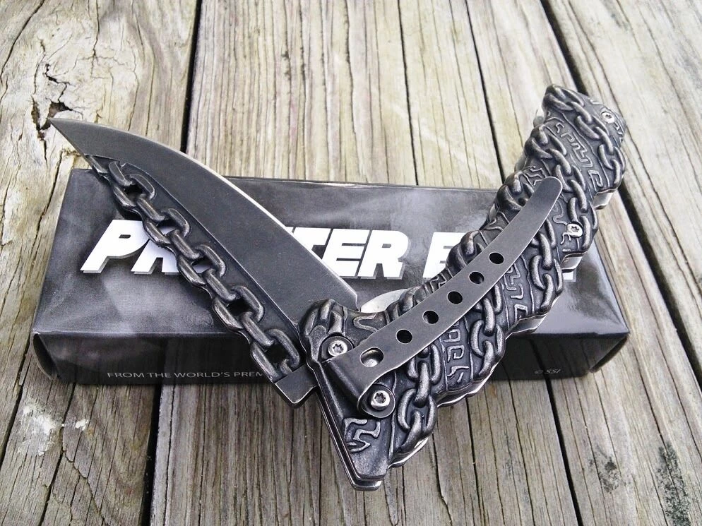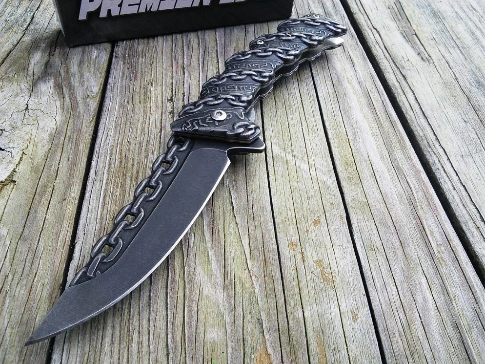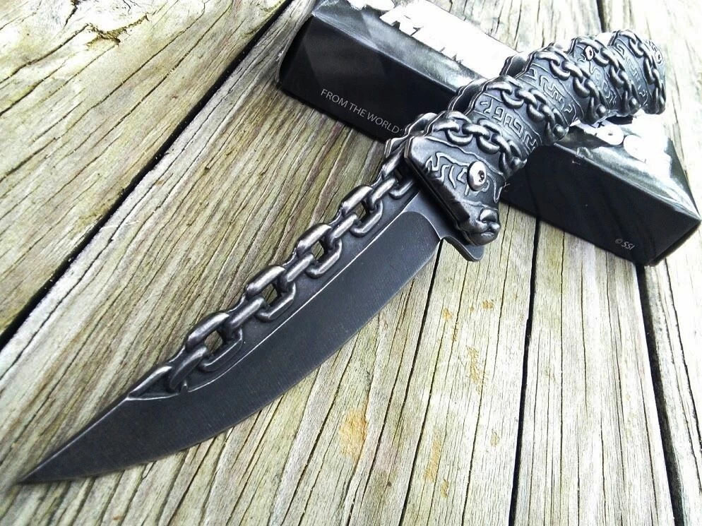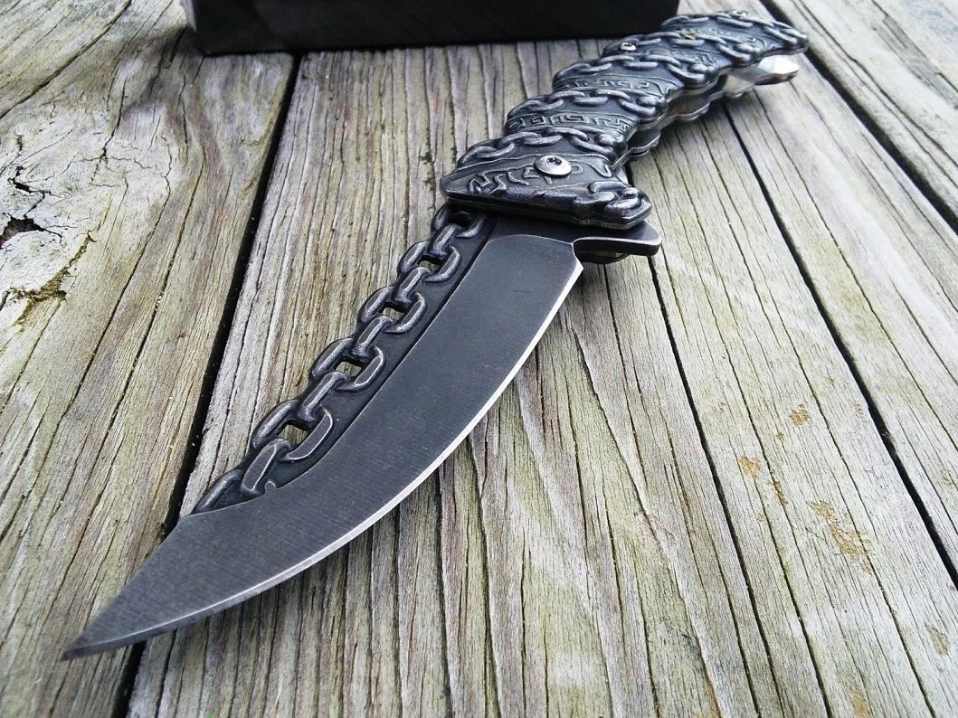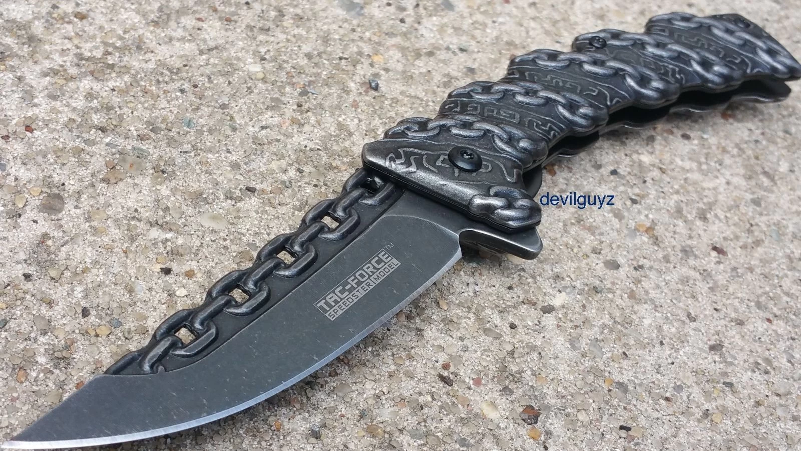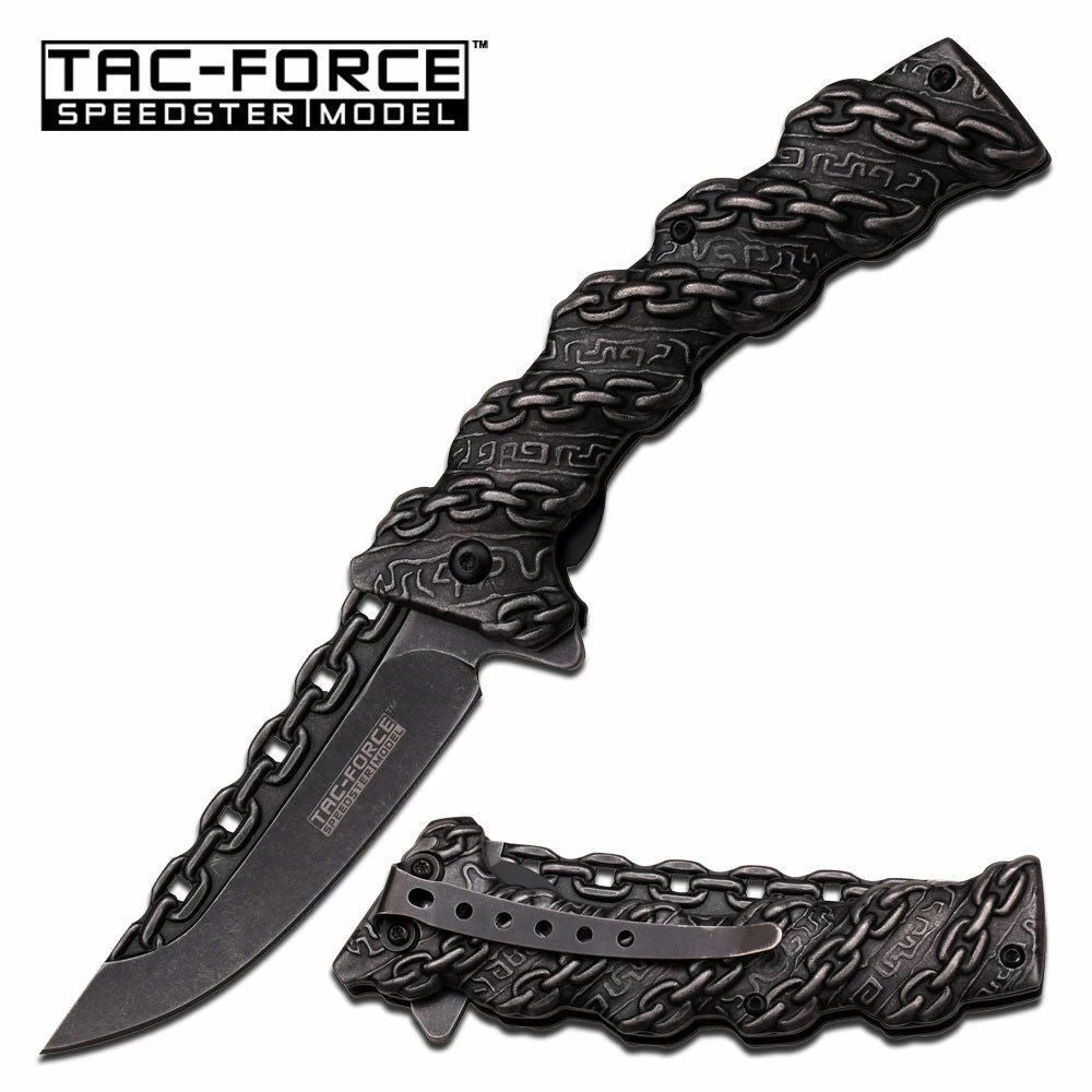 - Type: Tac Force Spring Assisted Stonewashed Chain Link Fantasy Pocket Knife