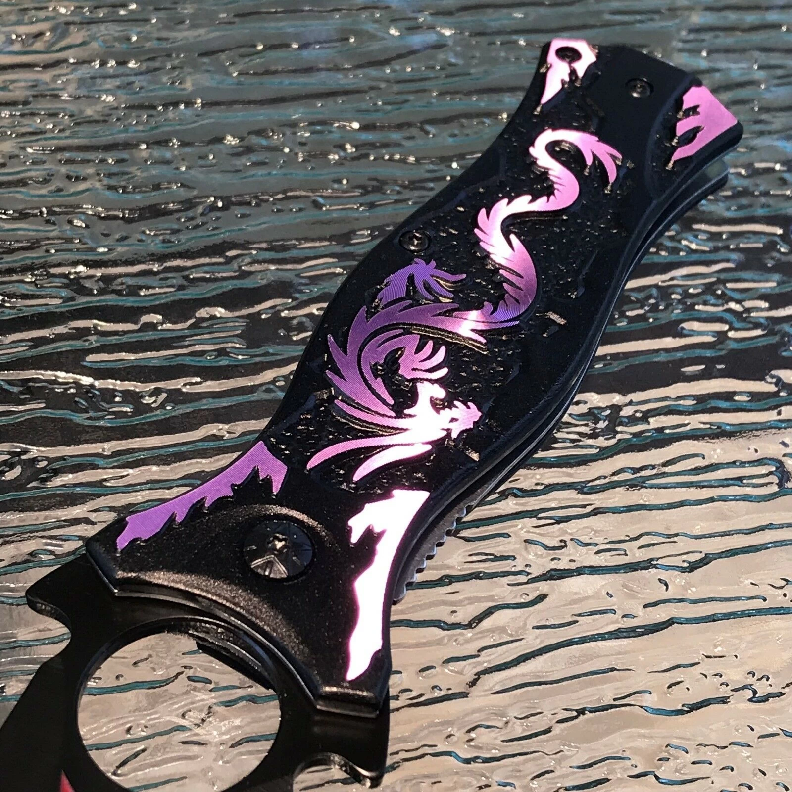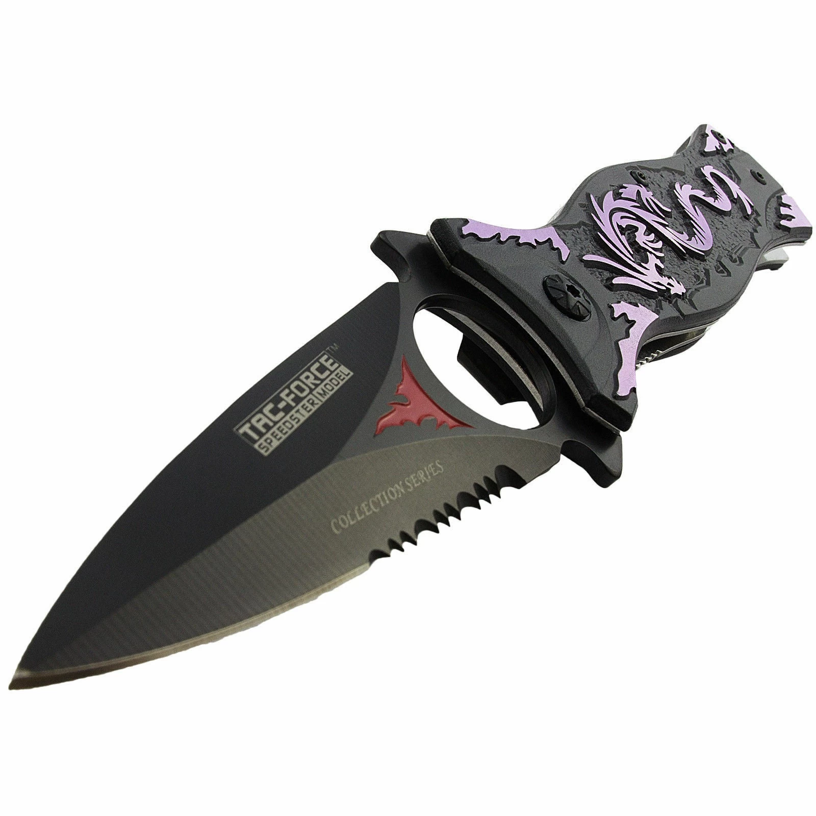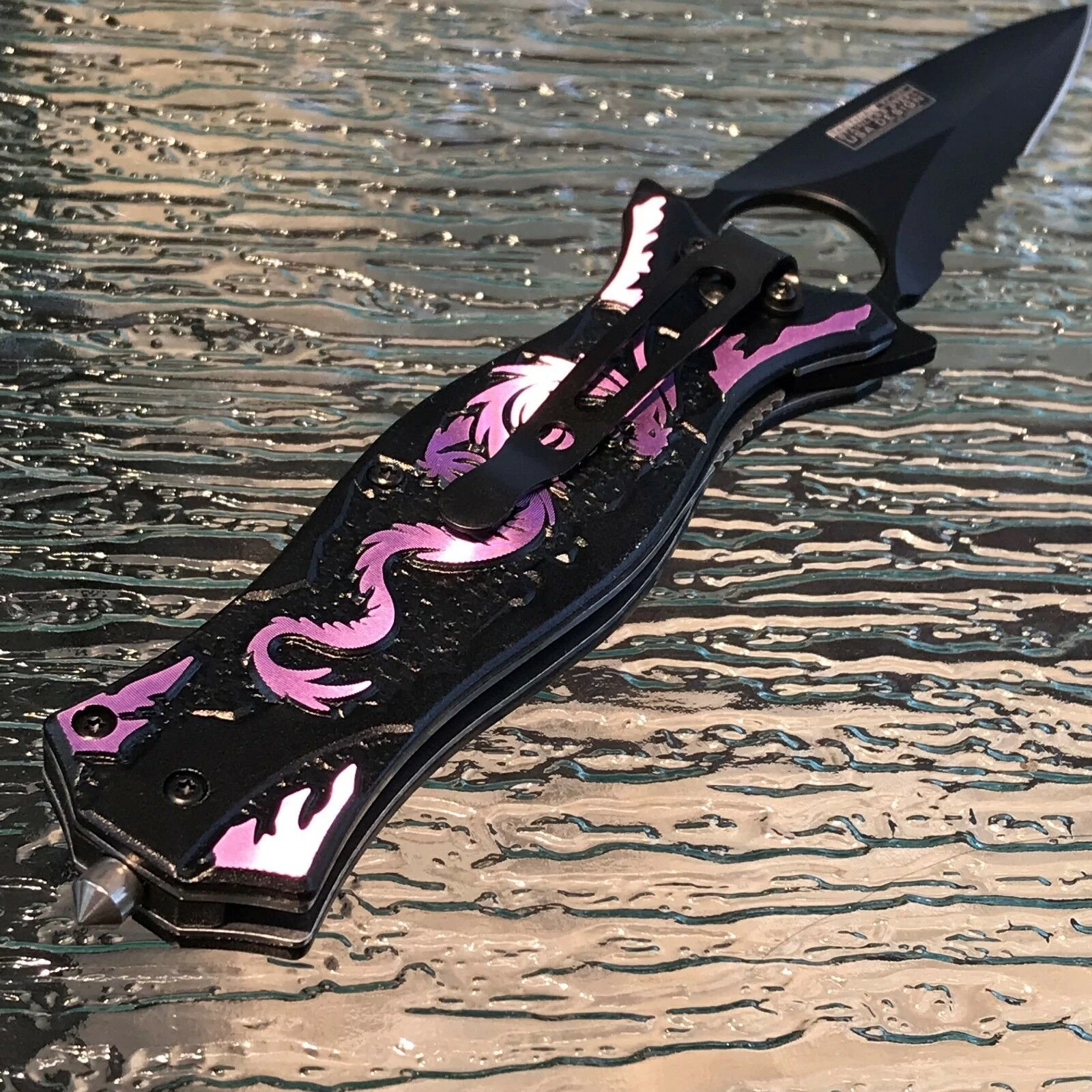 - Type: Tac Force Purple Dragon Pocket Knife – Fantasy Knife, Red Flames