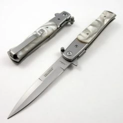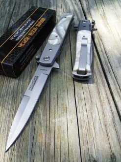 - Type: Tac Force White Pearl Handle Stiletto Spring Assisted Folding Pocket Knife