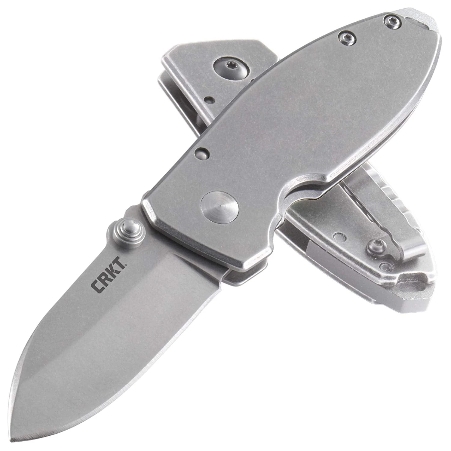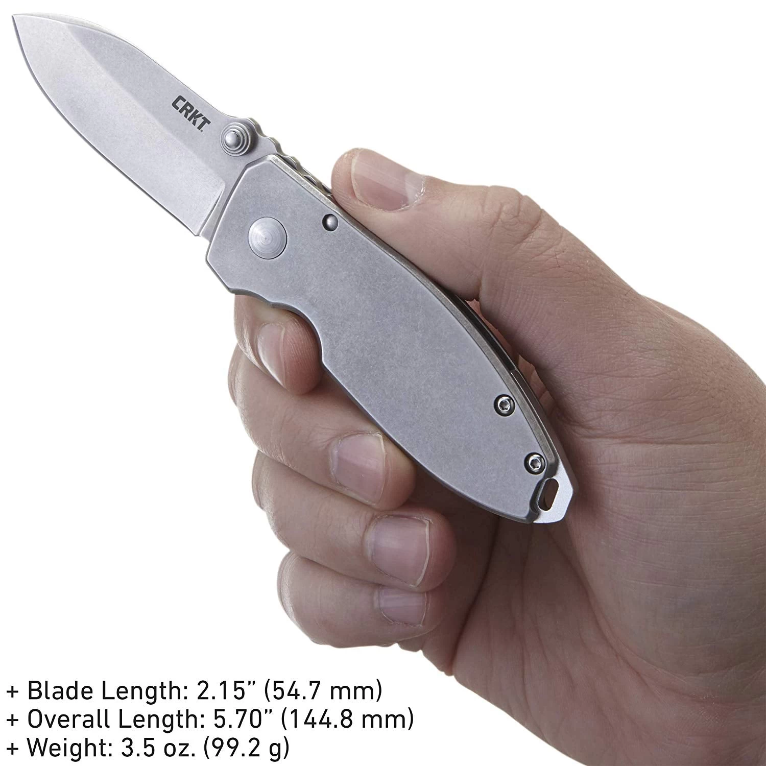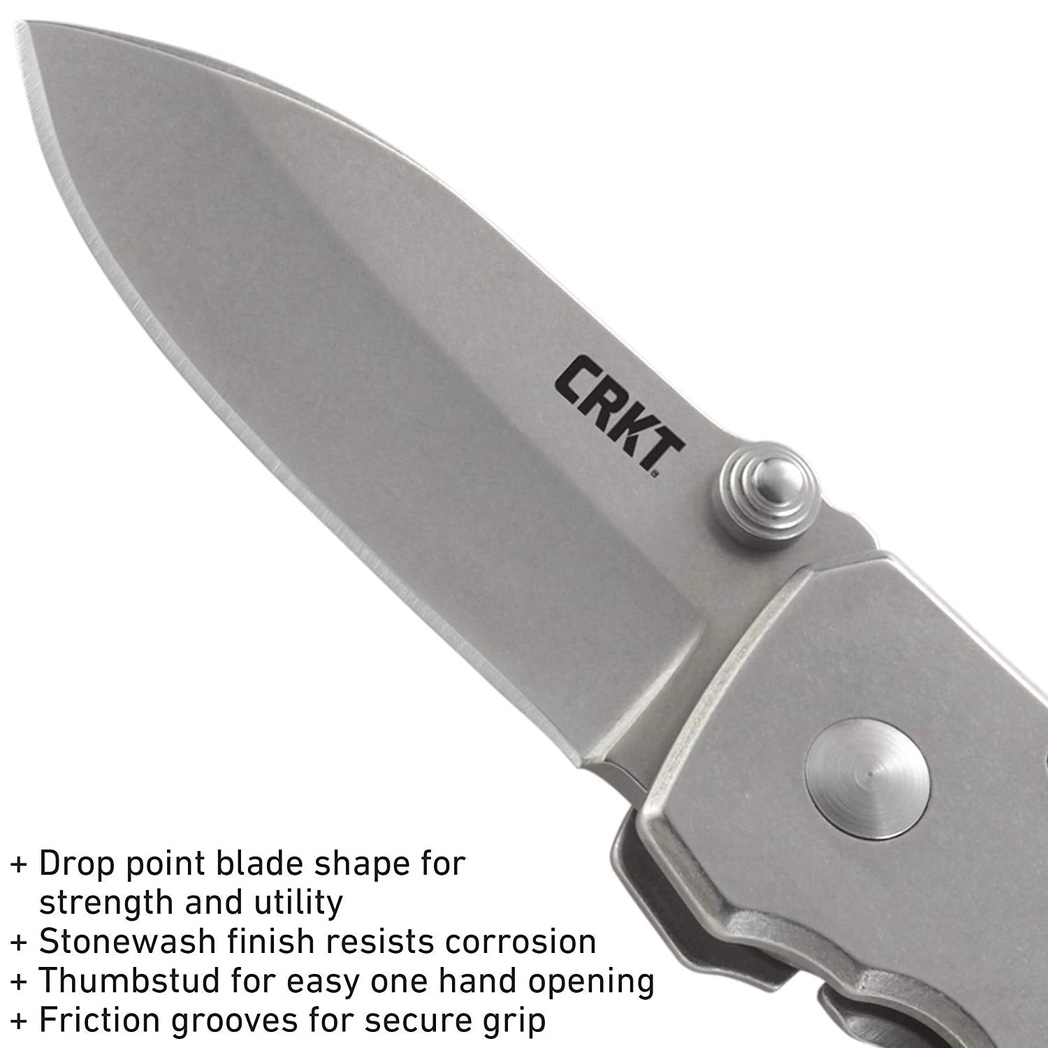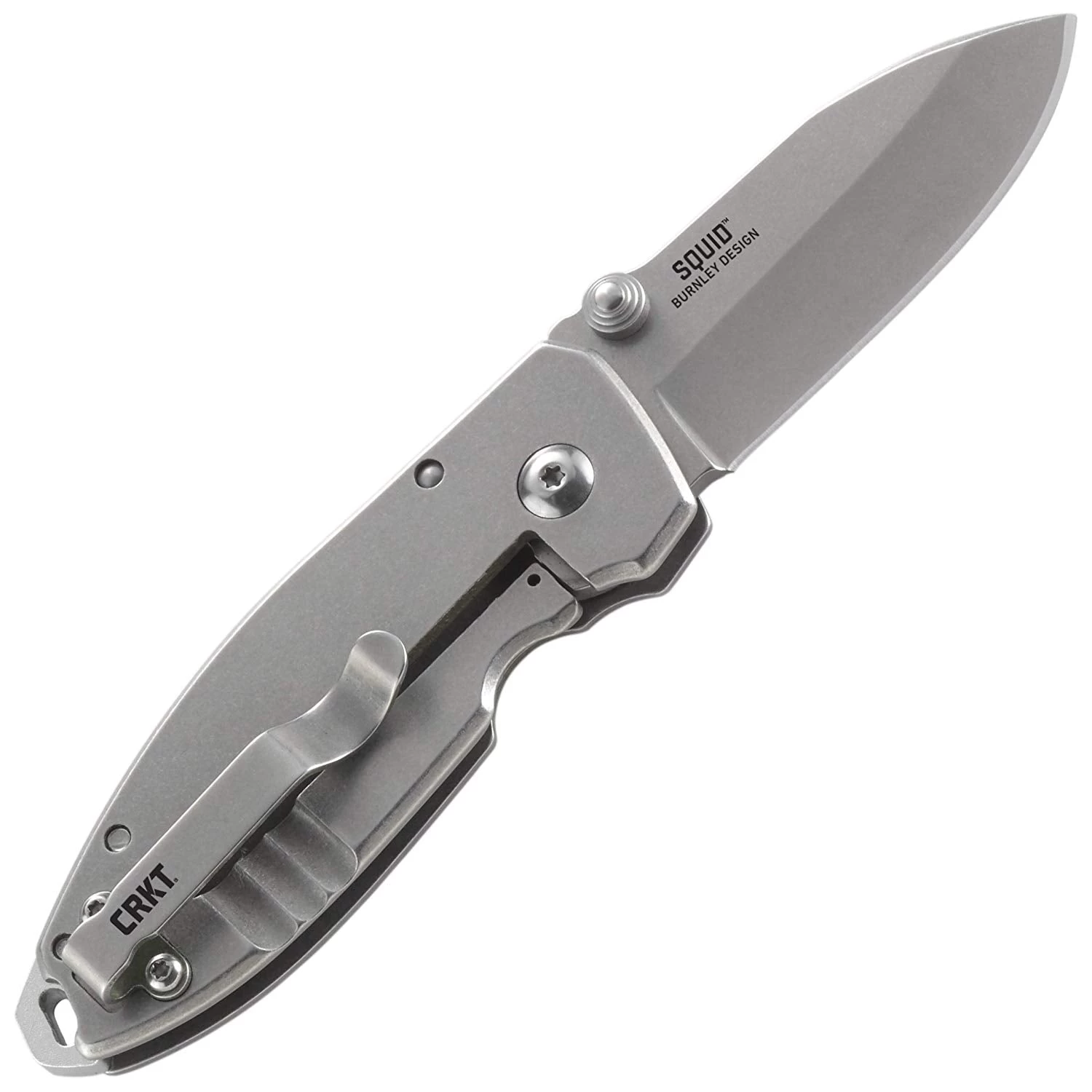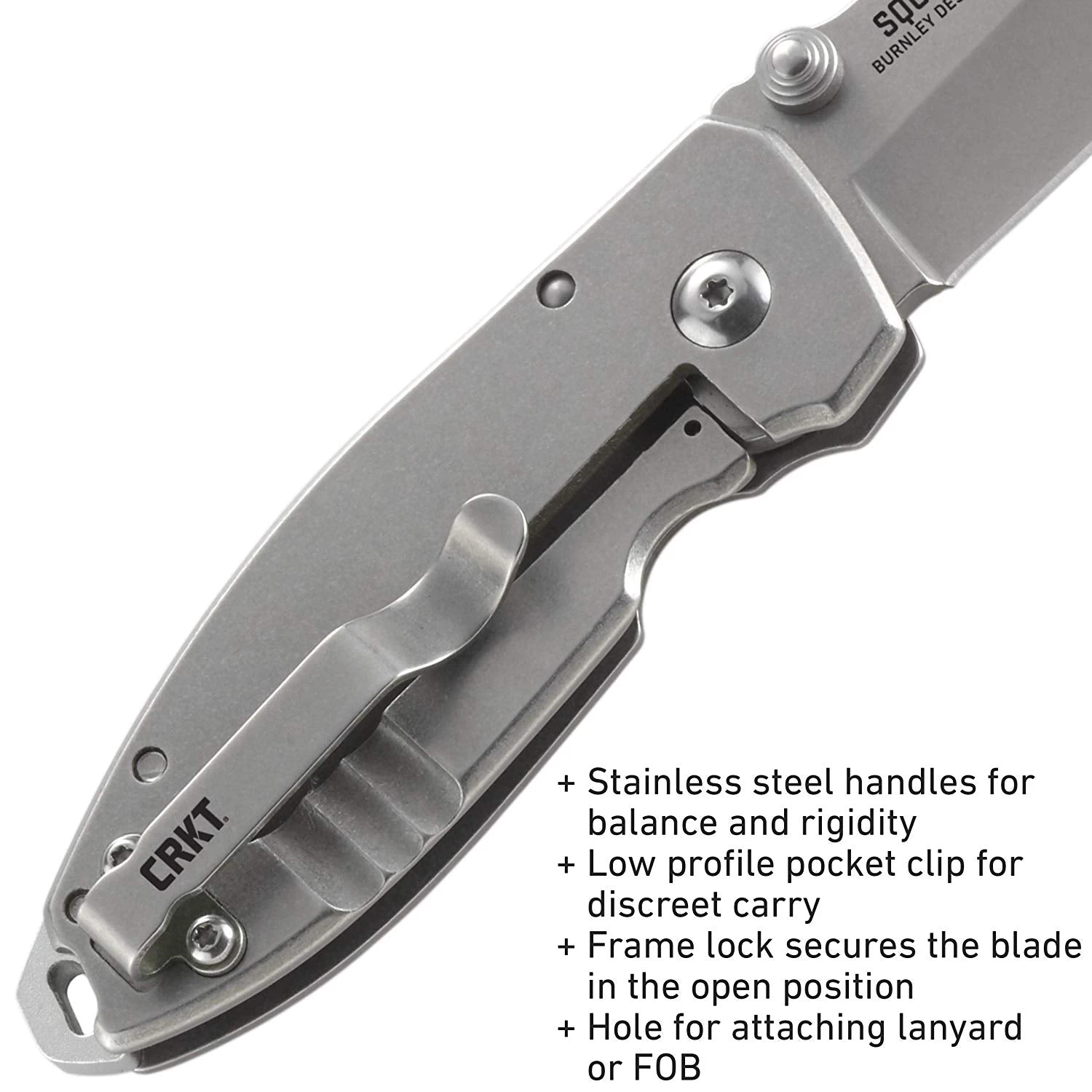 CRKT Squid Folding Pocket Knife. Compact EDC Straight Edge Utility Knife with Stainless Steel Blade and Framelock Handle – Silver Stonewash 2490. 8Cr13MoV Blade, Stainless Steel w/Stonewash Handle