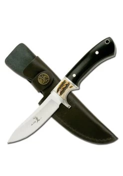 - SPECIAL FEATURES: Fixed Blade Knife, Full Tang. Jig Bone and Black Wood Handle, Includes Genuine Leather Sheath.