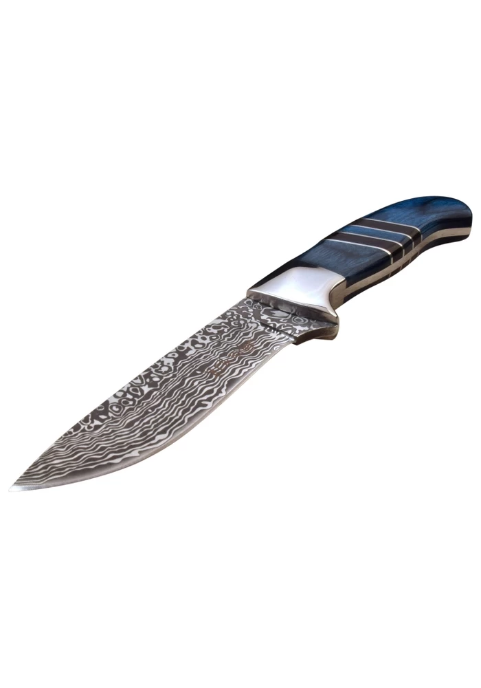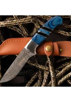 - SPECIAL FEATURES: Fixed Blade Knife- Full Tang Construction, Blue Wood Handle, Includes Leather Sheath.