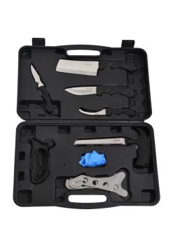 - DIMENSIONS: Butcher Knife- 12.5-inches overall, Saw- 12-inches overall, Boning Knife- 10-inches overall, Gut Hook Knife- 9-inches overall, Caper Knife- 8.5-inches overall.