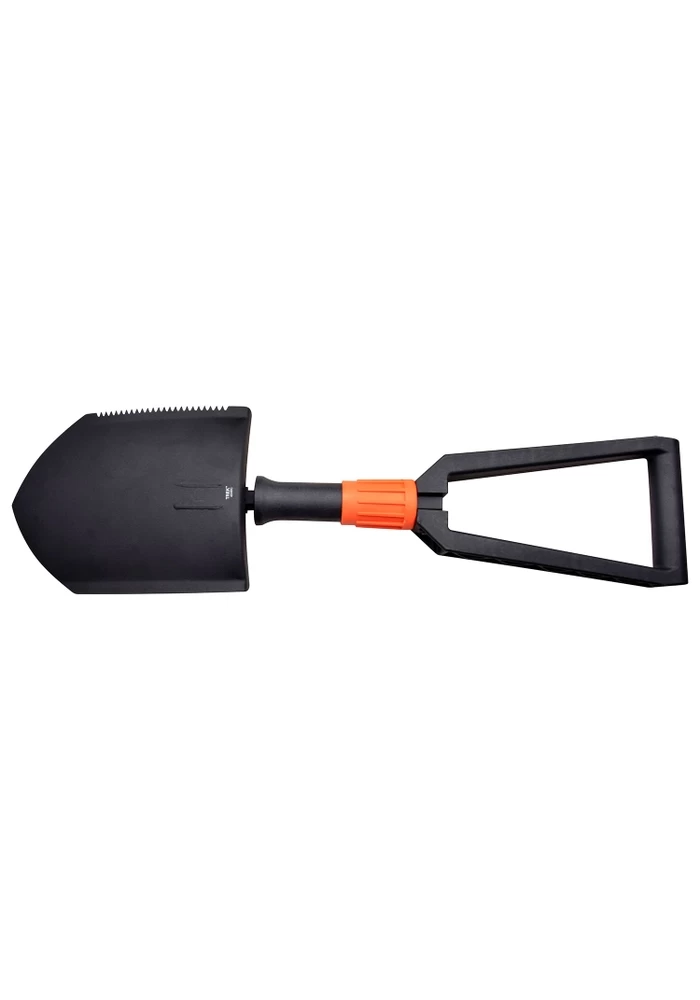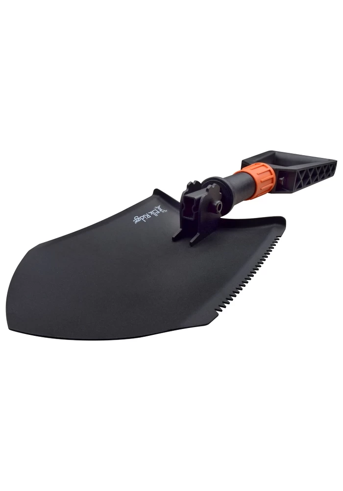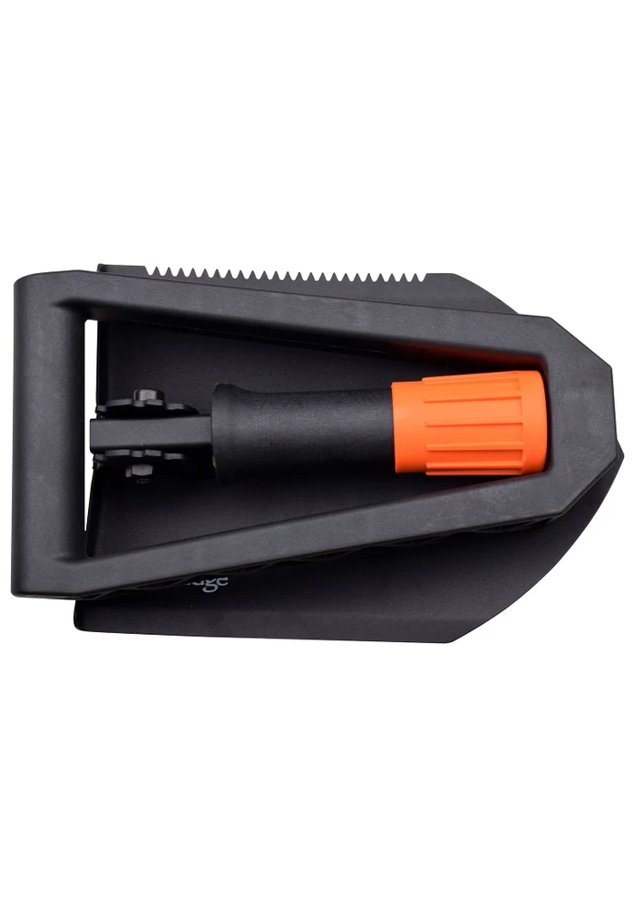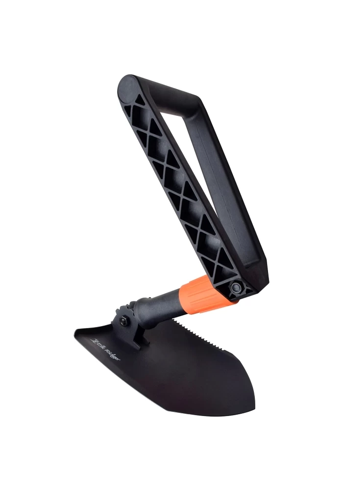 - SPECIAL FEATURES: Foldable Shovel/Entrenching Tool – Black Carbon Steel Blade with One Serrated Edge, Steel Tube with Injection Molded Nylon Fiber Handle. Measures 23-inches Overall.