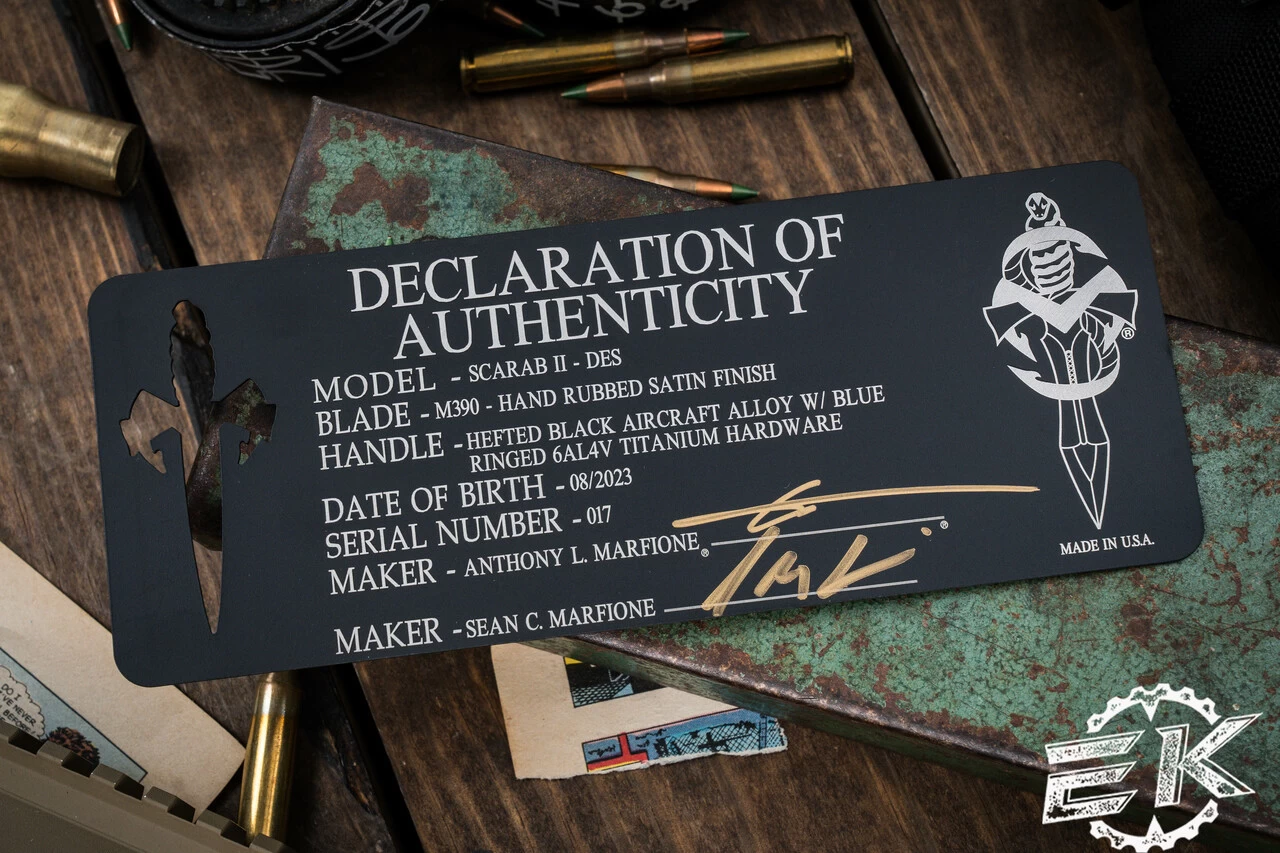 - Blade: 4″, Double-Edge Drop Point DE-S (Hand Rubbed)