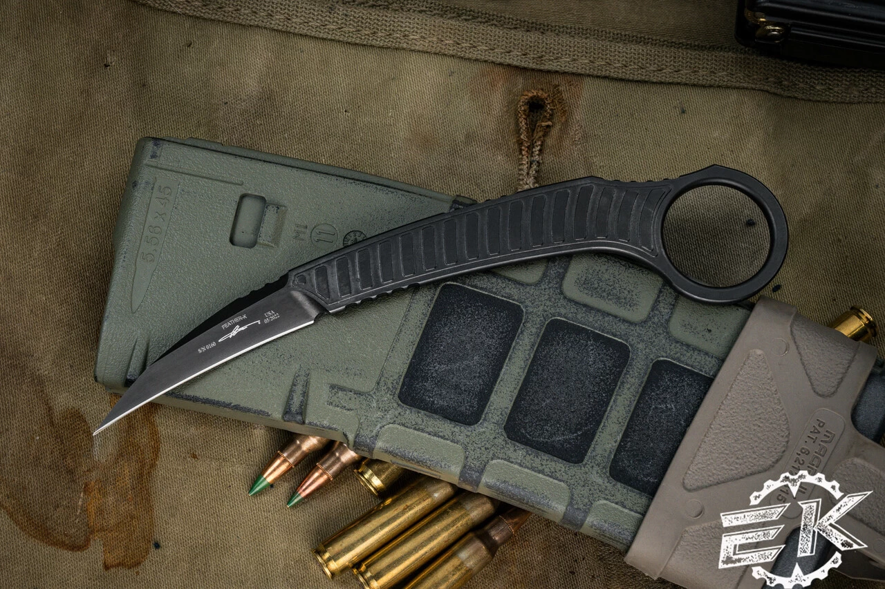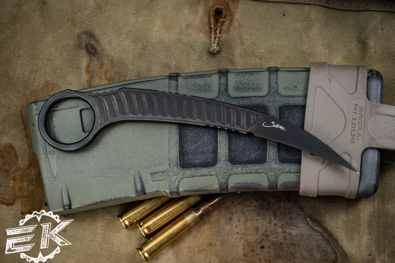 Be the first to review “Microtech/Bastinelli “Feather” Fixed Blade Knife 3″ Black DLC 215-1DLCS (Preowned)” Cancel reply