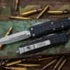 The Dirac was Microtech’s first dual action knife with a cover firing slider. They designed an updated ergonomic chassis with curved lines similar to the HALO® for a slightly different feel compared to their other handles. The Team researched this particular OTF design and applied Marfione’s signature ultra-high tolerance Microtech features such as their proprietary hardware, innovative internal mechanism, and glass breaker. With an overall length of 7.25 inches, the Dirac is just right for an everyday knife.
