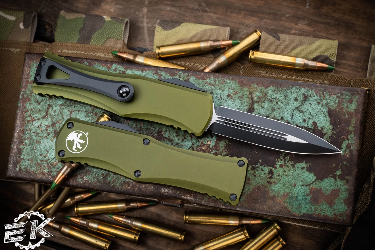 Microtech Hera OTF Automatic Knife OD Green 3″ Dagger Black 702-1OD