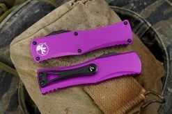 Microtech Hera Violet OTF Automatic Knife Black 3″ Dagger Black Serrated 702-3VI