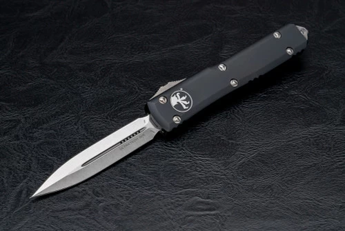 Microtech Knives Ultratech D/E OTF Automatic Knife Stonewashed Blade Black Handles – 122-10