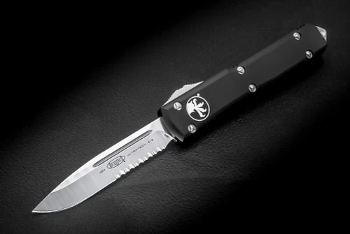 Microtech Knives Ultratech S/E OTF Automatic Knife Partially Serrated Satin Blade Contoured Black Handle 121-5