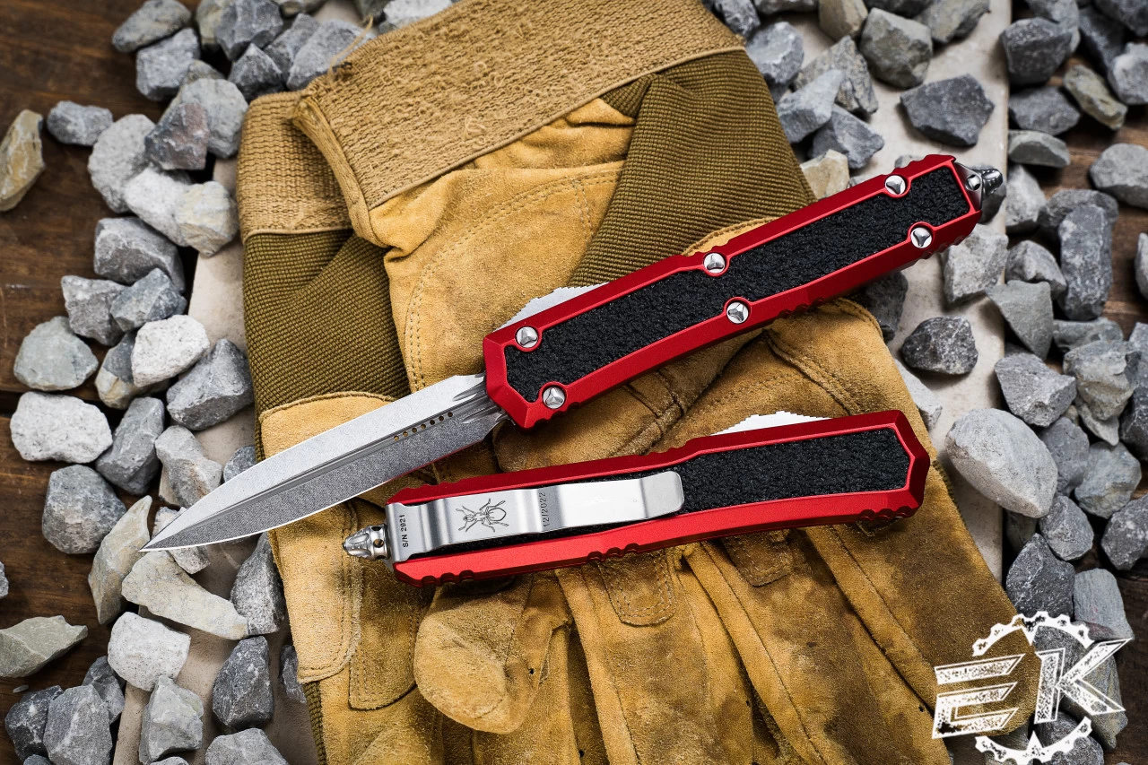 Microtech Makora OTF Automatic Knife Red (Nickel Boron Internals) 3.25″ Stonewash Dagger 206-10RDS