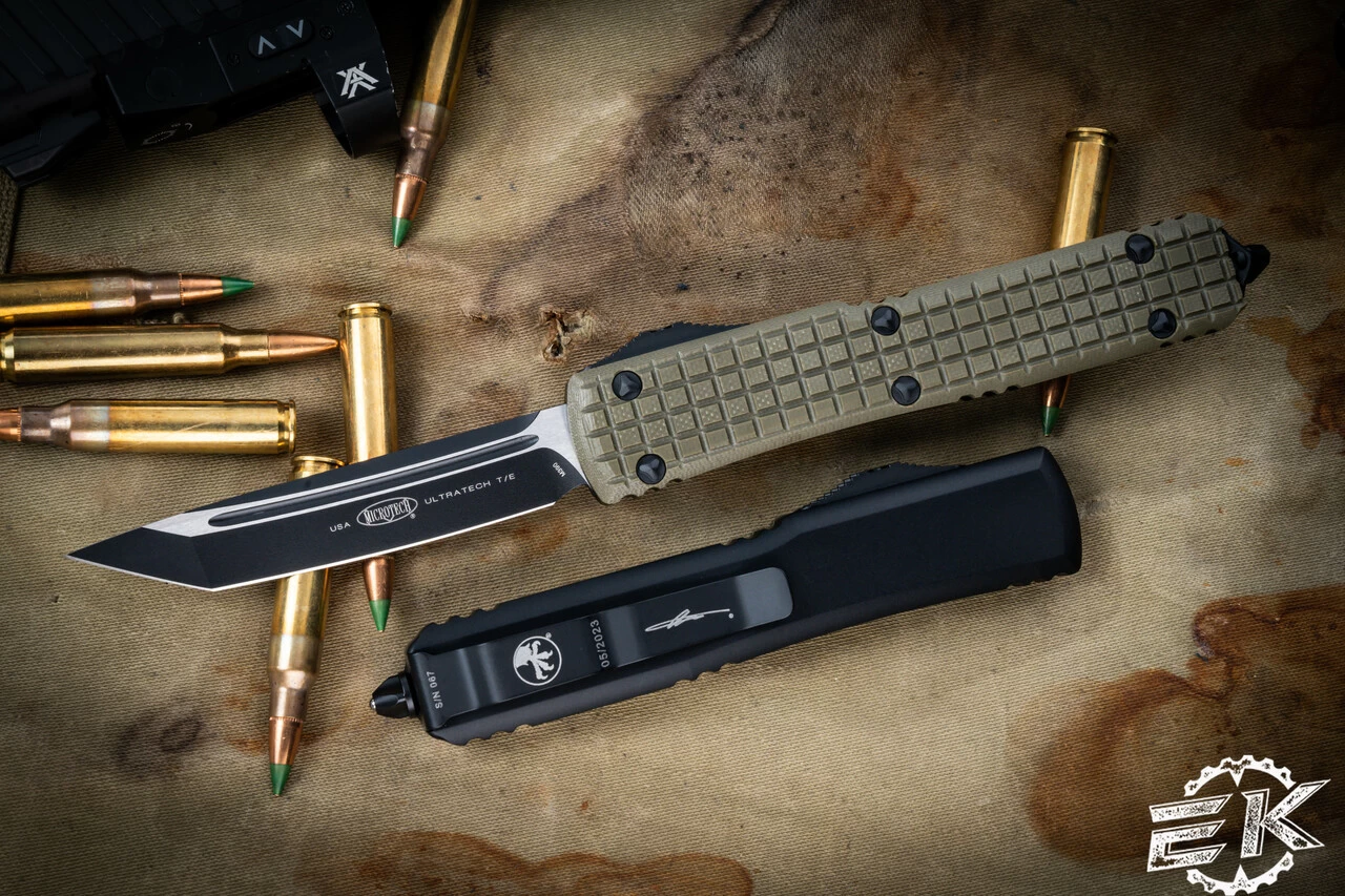 Microtech Storm Trooper Ultratech Deep Engraved OTF Knife 3.4″ Drop Point Serrated 121-2STD