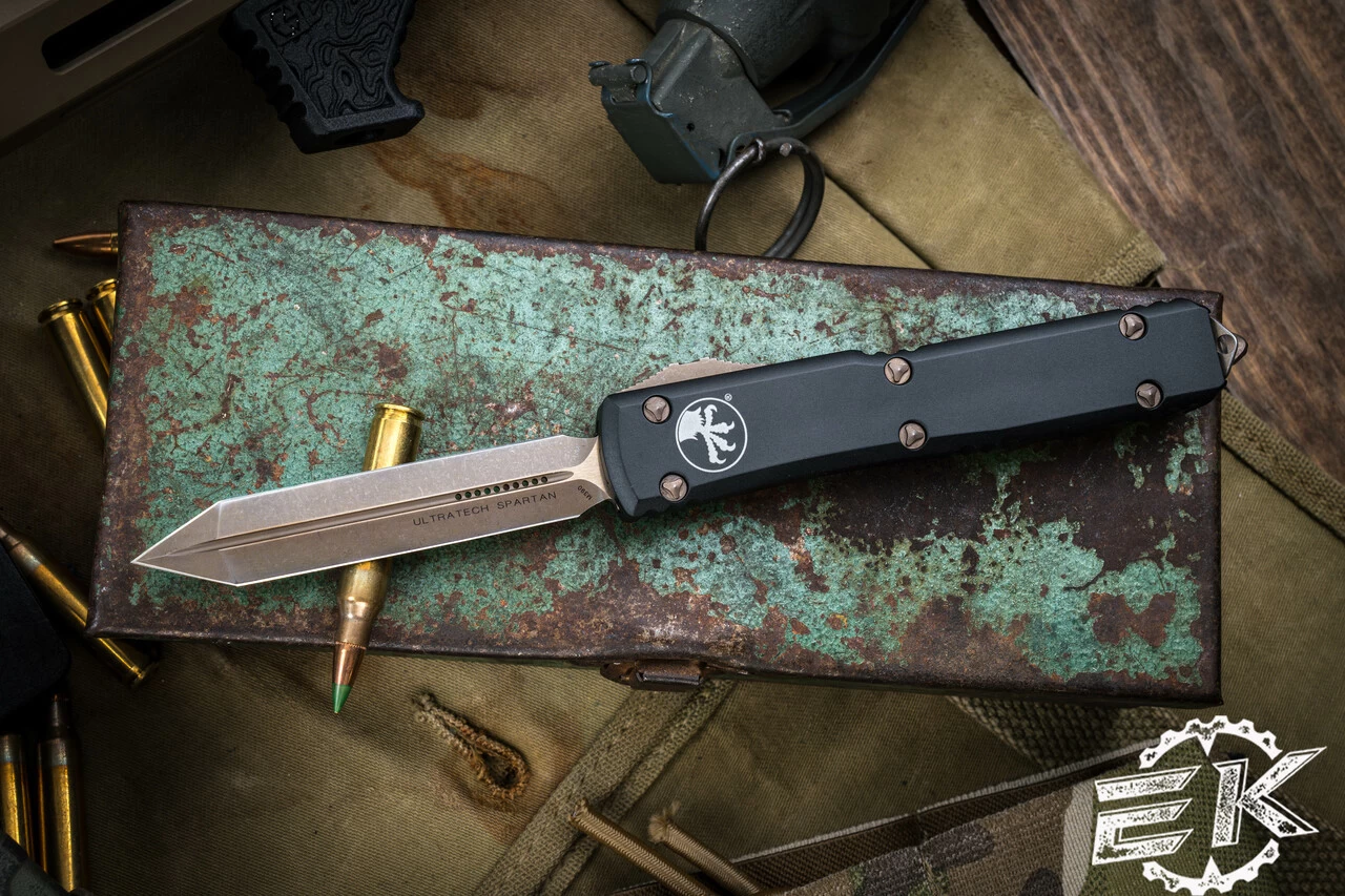 Microtech Ultratech Spartan OTF Knife Black 3.4″ Bronze Apocalyptic Spartan 223-13AP (Preowned)