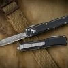 Who said size doesn’t matter? The Microtech UTX-70 is one of the smallest OTF (out the front) automatics on the market. At 70% the size of the Ultratech, Microtech’s first ever OTF knife, the UTX-70 has the same simplistic design and internal spring makeup. The spring remains “at rest” until the blade is deployed ensuring it fires effectively every time. The anodized aluminum handle measures just over 3 inches long and features bead blast hardware, pocket clip and auto firing slide switch on the side. The slide switch deploys and retracts the OTF rapidly with one push making it a perfection EDC OTF knife. The Microtech UTX-70 OTF auto features a 2.4″ double edge blade with a stonewash finish. The UTX 70 auto is perfect sized for the hand and pocket.
