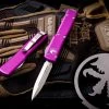 The UTX 70 features a black anodized aluminum handle that measures just over 3 inches long and features black tactical hardware, pocket clip and auto firing slide switch on the side. The slide switch deploys and retracts the OTF rapidly with one push making it a perfect EDC OTF knife. The Microtech UTX-70 OTF auto features a 2.4″ single edge drop point standard blade with a black finish. The UTX 70 auto is perfect sized for the hand and pocket.