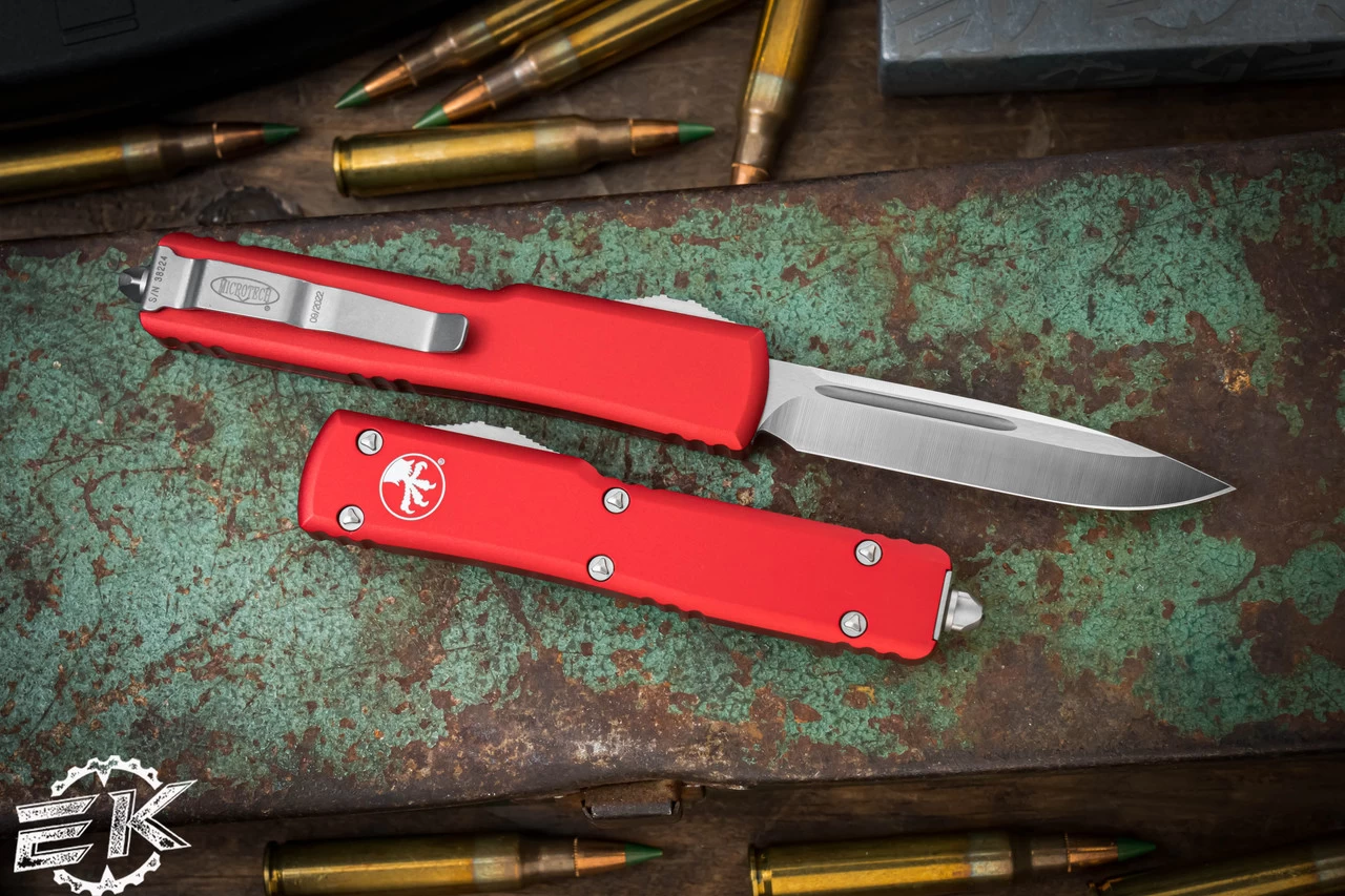 Microtech UTX-70 OTF Automatic Knife Red 2.4″ Drop Point Satin 148-4RD