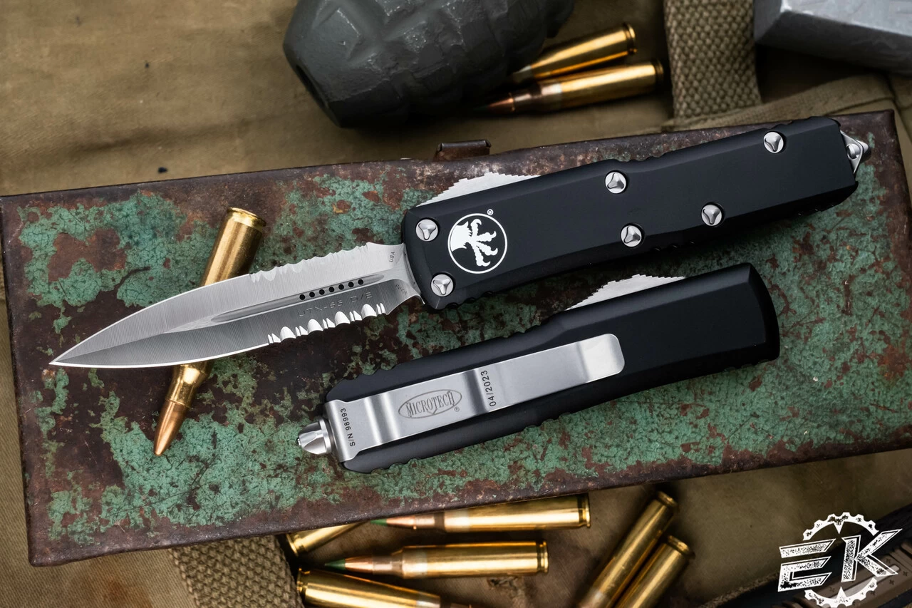 - Blade: 3.1″ Dagger Satin, Part-Serrated