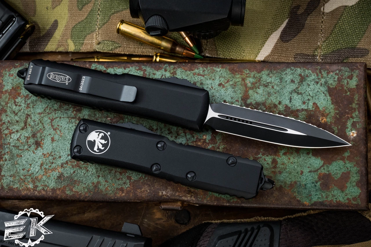 Microtech UTX-85 OTF Automatic Knife Black Tactical 3.1″ Serrated Dagger Black 232-3T