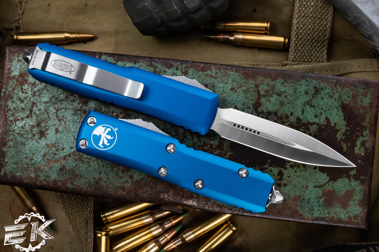 The Microtech UTX-85 out the front knife is a compact pocket friendly auto with functional greatness packaged into Microtech’s stellar design perfected by company owner Anthony Marfione. The UTX 85 comes with a very high quality steel blade and stainless steel hardware including screws, pocket clip and thumb slide for deployment and retraction.