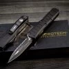 The Microtech UTX-85 OTF out the front knife is a compact pocket friendly auto with functional greatness packaged into Microtech’s stellar design perfected by company owner Anthony Marfione. The UTX 85 comes with a high quality steel blade in black and black stainless steel hardware including screws, pocket clip and thumb slide for deployment and retraction.