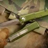 The Microtech UTX-85 out the front knife is a compact pocket friendly auto with functional greatness packaged into Microtech’s stellar design perfected by company owner Anthony Marfione. The UTX 85 comes with a very high quality steel blade and stainless steel hardware including screws, pocket clip and thumb slide for deployment and retraction.