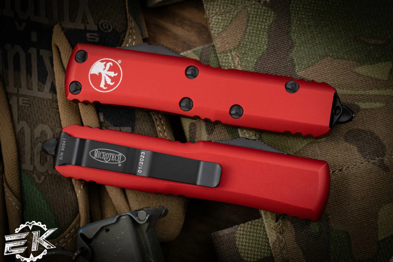This model is popped off with the popular Double-Edge, Double Tanto, style Spartan blade in a (rarely-seen) Double Full-Serrated blade.