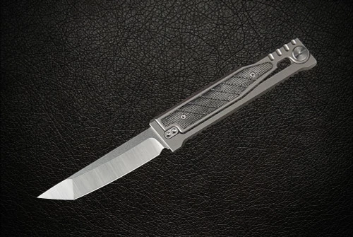 Reate Knives EXO Exoskeleton Design Manual OTF Knife Tanto Satin Blade W/ Titanium And Black Micarta Handles