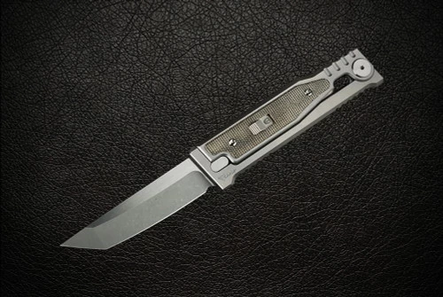 Reate Knives EXO-M Exoskeleton Design Manual OTF Knife Tanto Stonewash Blade W/ Titanium And Green Micarta Handles