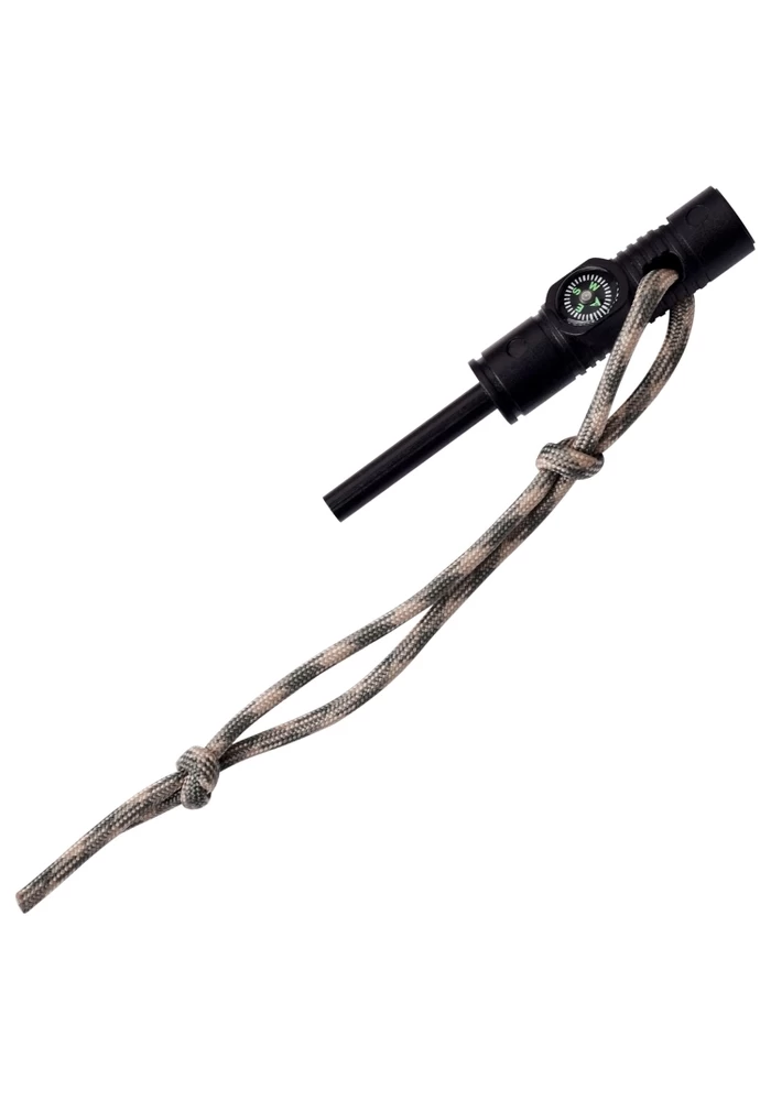- INCLUDED 550 LANYARD, MULTI USE FIRE STARTER, NYLON SHEATH