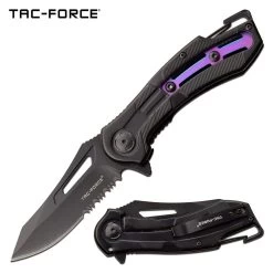 This Tac Force Ballistic Spring Assisted Tactical pocket knife is a great patriotic folding knife to have. This knife features a stainless steel blade and aluminum handle with 3CR13 Blade design. Comes with a Carabiner Clip, and belt clip.