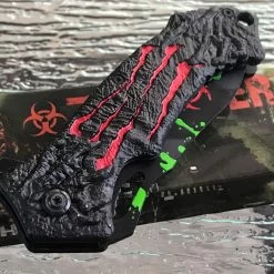 - Blade Finish: Black – Biohazard Symbol – Z-Hunter Imprint – Zombie Splatter
